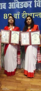 भीमराव अंबेडकर विश्वविद्यालय, आगरा के 88वें दीक्षांत समारोह में मेधावी विद्यार्थियों को राज्यपाल श्रीमती आनंदी बेन पटेल द्वारा सम्मानित किया गया। जिसमें कुंवर आर. सी. महिला महाविद्यालय, मैनपुरी की छात्रा कु. प्राची दीक्षित पुत्री श्री अनिल दीक्षित ने स्नातक स्तर पर संगीत गायन विषय में सुशीला देवी हरिकिशन गुप्ता’स्मृति रजत’ पदक तथा कु. ज़ेबा परवीन पुत्री मि. चाँद आलम ने स्नातकोत्तर स्तर पर संगीत गायन विषय में सर्वाधिक अंक हासिल कर ‘हरि किशोर कपूर स्मारक रजत पदक’ प्राप्त कर जनपद को गौरवान्वित किया है। छात्राओं की इस उपलब्धि पर समस्त महाविद्यालय परिवार हर्षित एवं गर्वित है। इस मौके पर महाविद्यालय के मैनेजिंग ट्रस्टी श्री जितेन्द्र सिंह कुशवाह, सचिव श्री बलवीर सिंह चौहान तथा संयुक्त सचिव डॉ. सुशीला त्यागी जी ने छात्राओं को हार्दिक बधाई देते हुए शुभाशीष प्रदान किया एवं उनके उज्जवल भविष्य की कामना की। महाविद्यालय की प्राचार्या तथा संगीत गायन विभाग की विभागाध्यक्ष डॉ. शेफाली यादव जी ने छात्राओं को बधाई एवं शुभकामना देते हुए कहा कि यह छात्राओं के साथ- साथ हमारे द्वारा प्रदान की गई शिक्षा का भी सम्मान है। छात्राएं इसी प्रकार महाविद्यालय एवं जनपद के नाम को सफलता के शीर्ष तक पहुंचाएं ऐसी शुभेच्छा है। विभाग की अन्य शिक्षिकाएं कु. पारुल दूबे तथा कु. रंगोली यादव ने भी छात्राओं को बधाई एवं अग्रिम भविष्य की मंगलकामनाएं प्रदान कर प्रसन्नता जाहिर की।