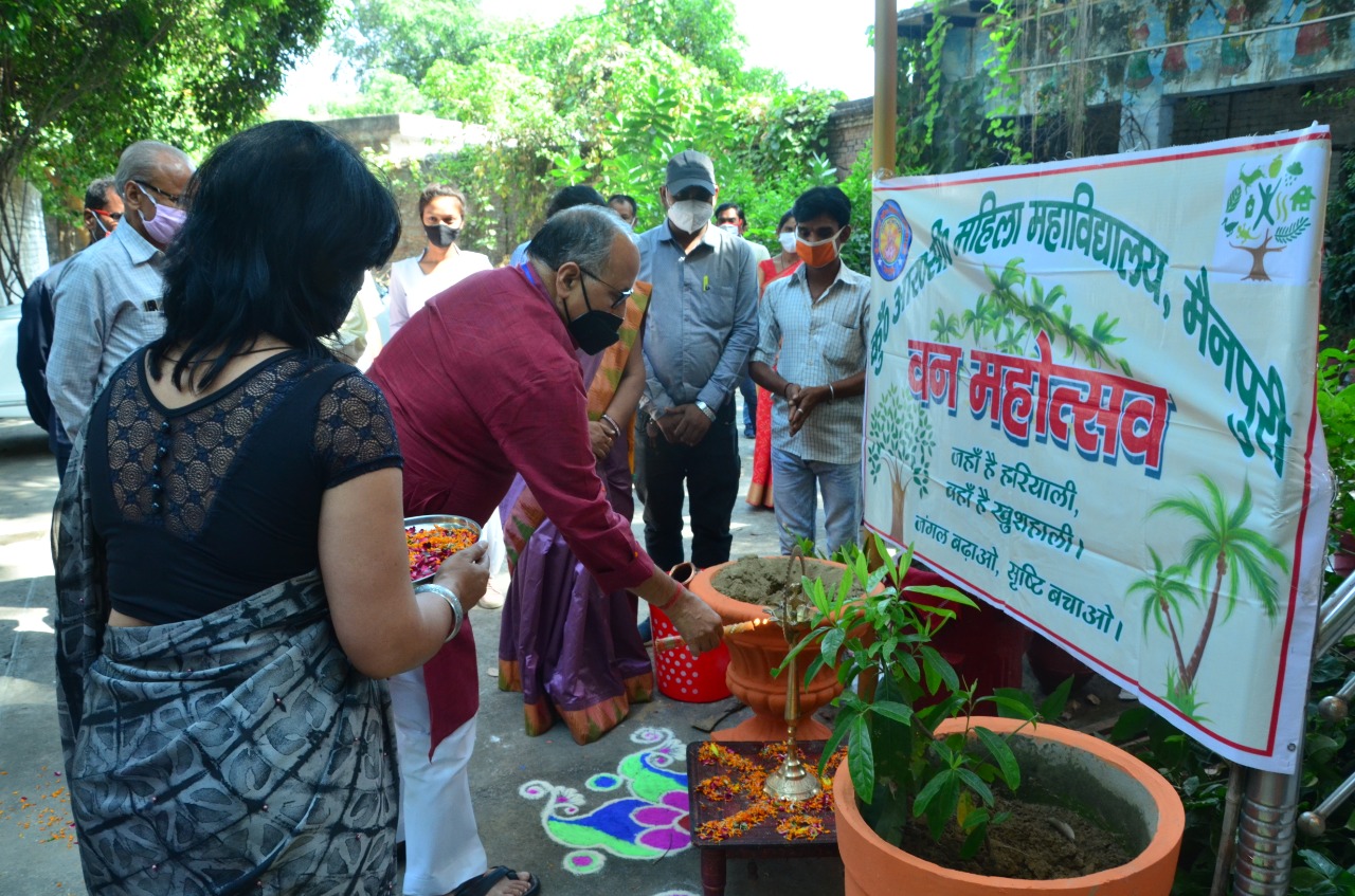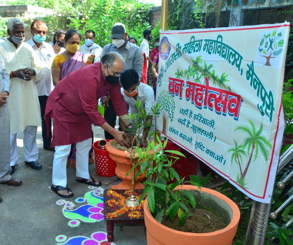 कुं0 आर0 सी0 महिला महाविद्यालय मैनपुरी की राष्ट्रीय सेवा योजना इकाई द्वारा आयोजित विशेष वृक्षारोपण अभियान में केबिनेट मंत्री माननीय श्री रामनरेश अग्निहोत्री जी द्वारा रुद्राक्ष के पौधे रोप कर कार्य क्रम को गति प्रदान की। इस अवसर पर माननीय मंत्री जी ने छात्राओं द्वारा बनाये गये रंगोली और पोस्टरके माध्यम से दिए गए जागरूकता अभियान की विशेष सराहना की एवम् उनको शुभकामनाएं दी।